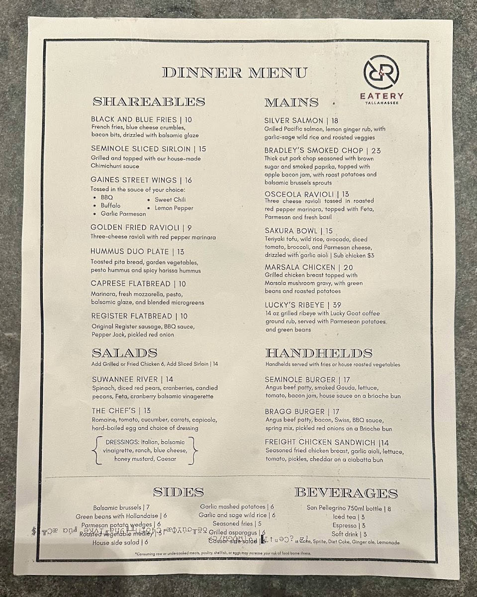 Two eggs made to order, your choice of bacon, Bradley’s sausage, or turkey sausage, served with seasoned potatoes, seasonal fruit cup, and a biscuit or toast.